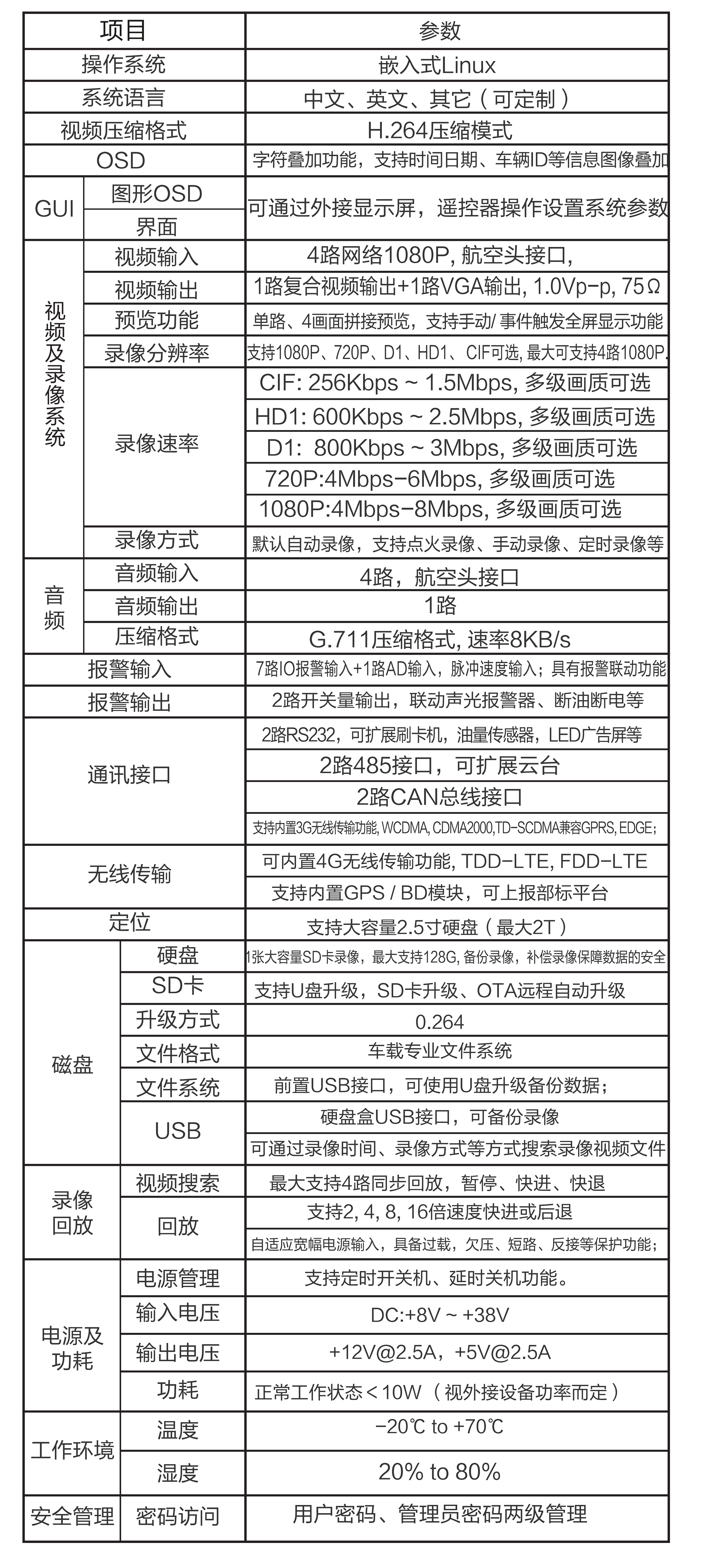 ◆ 硬盘+SD卡存储(**支持2T的2.5”硬盘,**支持128GSD卡)可完全抵抗车上震动灰尘 等导致的数据损坏;